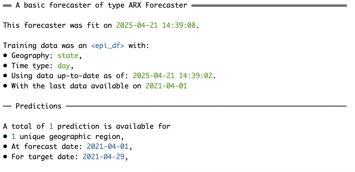 $predictions).arx_forecaster() output══ Epi Workflow [trained] ══════════════════════════════════════════════════════